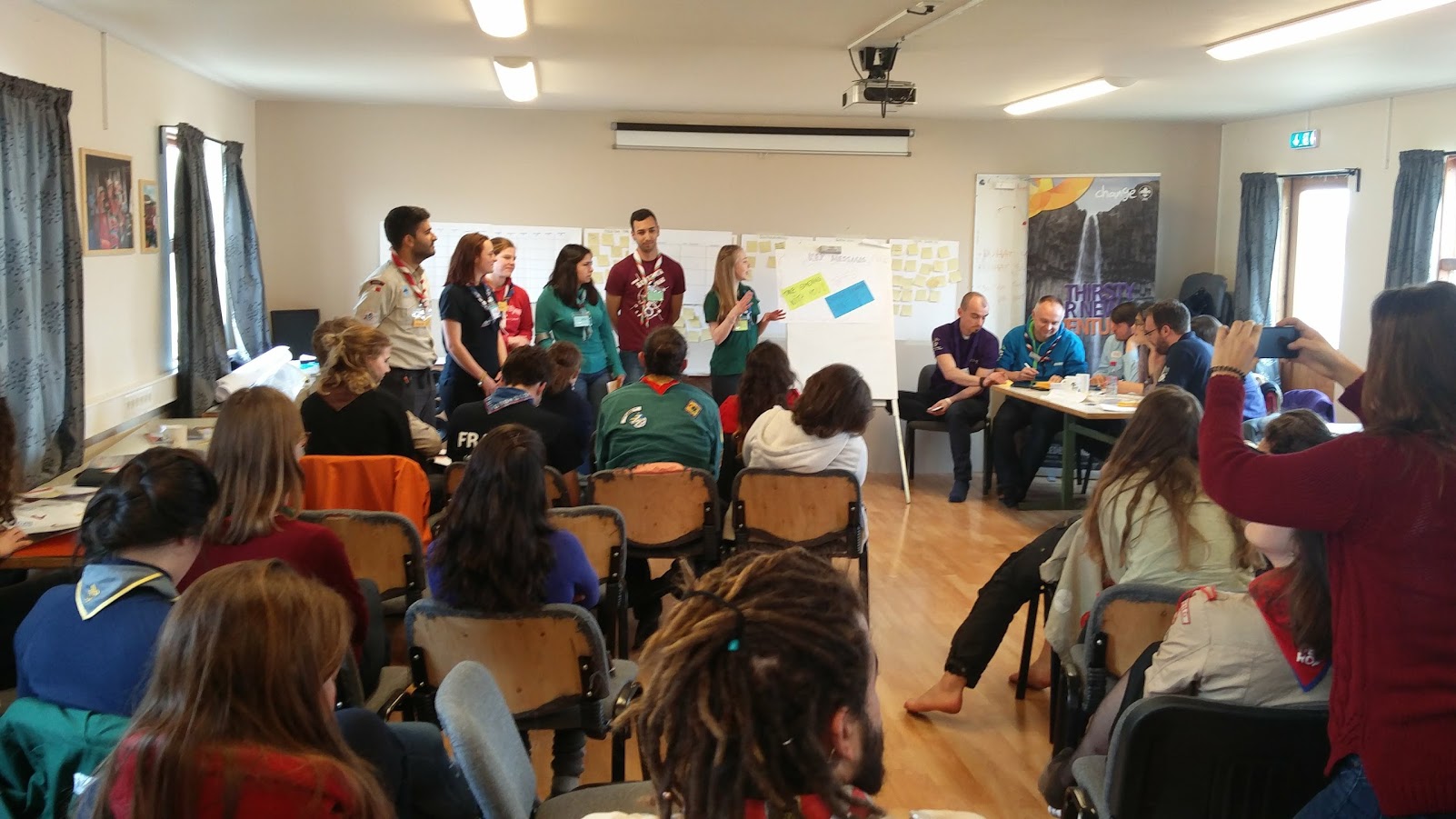 Pe parcursul workshop-urilor am discutat despre comunicare in general, am vizionat filmulete de prezentare ale diverselor centre locale, pe care le-am analizat. Filmuletele au prezentat activitati de tot felul, de la camp-uri de mare amploare pana la dans in ploaie si desigur video-uri de promovare a cercetasiei. Aici ne-am focusat pe trei mari intrebari: “Ce ne-a placut?”, “Ce ne-a surprins?” , “Este o practica buna sau nu?”. Desigur un filmulet adecvat de prezentare al cercetasiei trebuie sa primeasca cate un raspuns pozitiv la fiecare intrebare si mai ales la ultima.